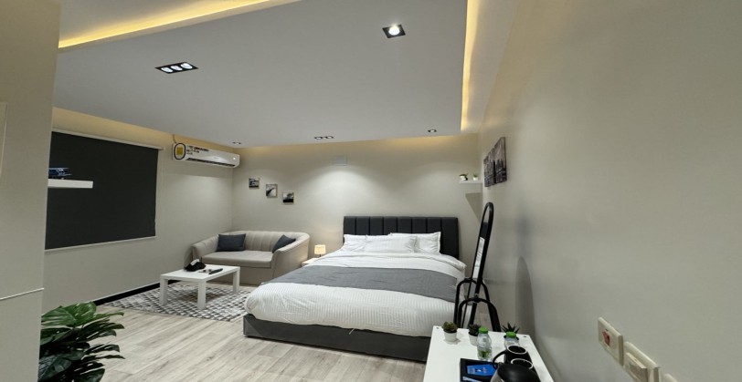 The studio includes a master bed with sofa and W.C , a kitchenette . The studio includes a master bed with sofa and W.C , a kitchenette .